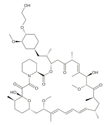 Everolimus is a derivative of Rapamycin (sirolimus), and works similarly to Rapamycin as an mTOR (mammalian target of rapamycin) inhibitor. It is currently used as an immunosuppressant to prevent rejection of organ transplants. In a similar fashion to other mTOR inhibitors Everolimus' effect is solely on the mTORC1 protein and not on the mTORC2 protein.